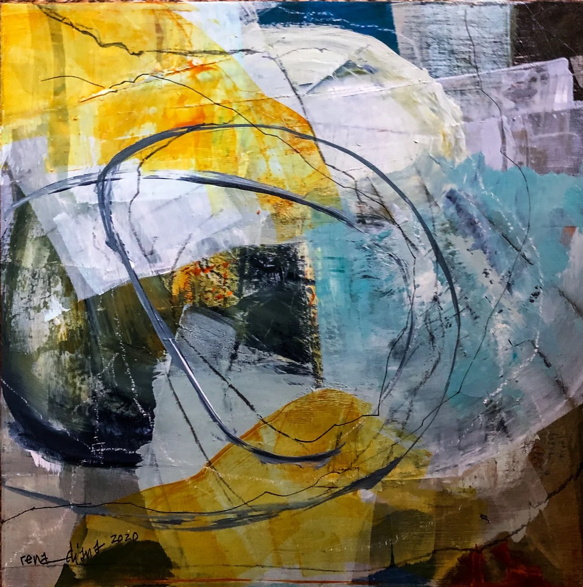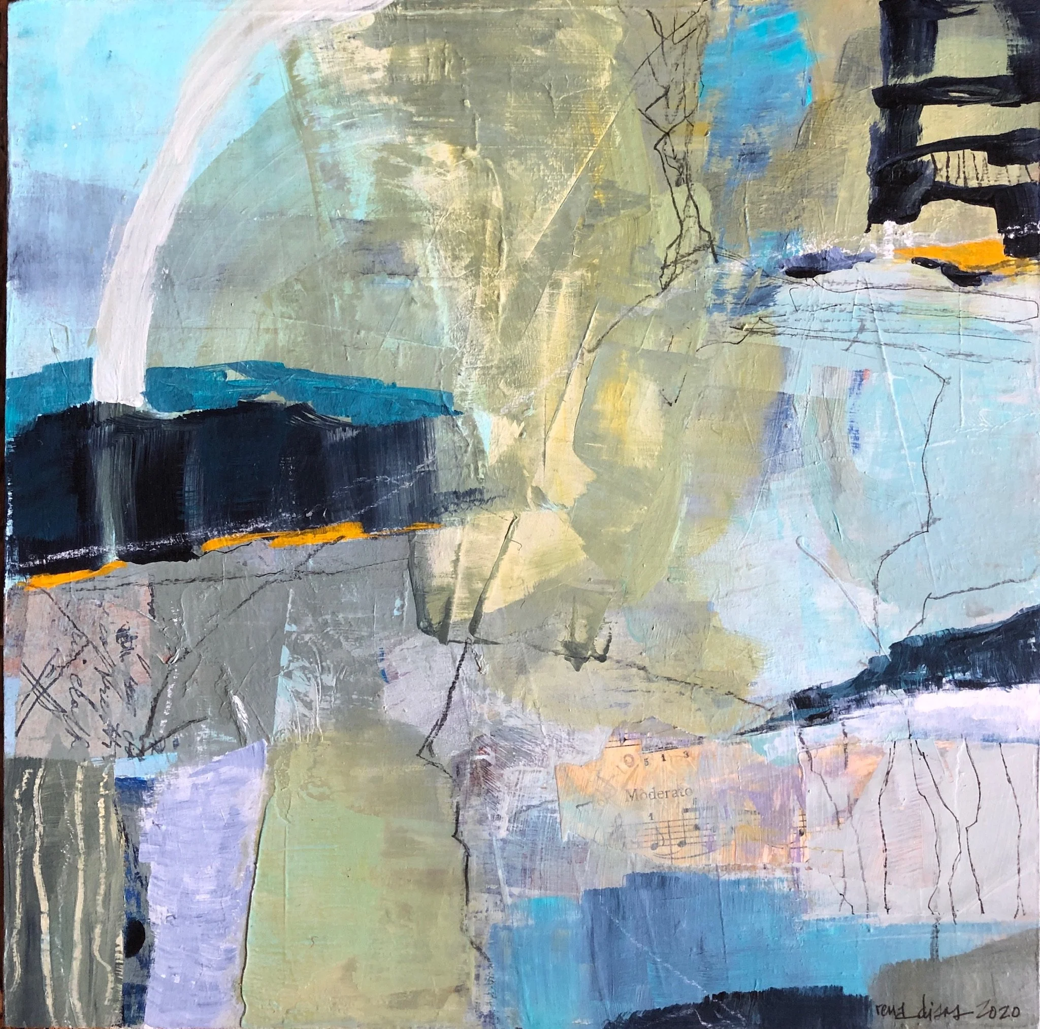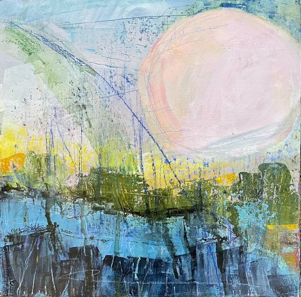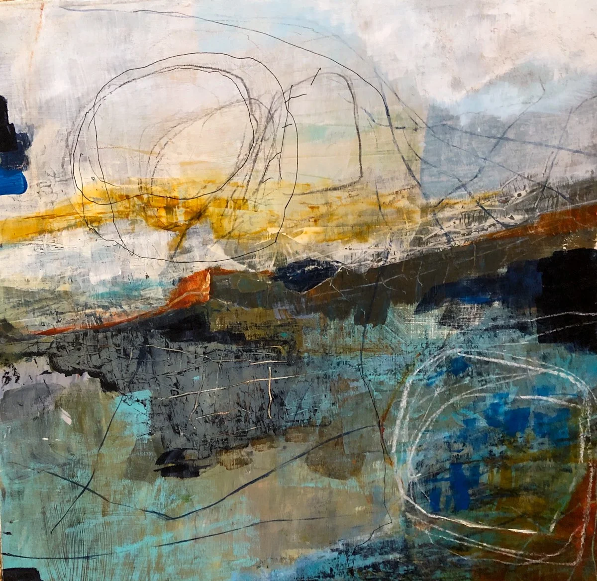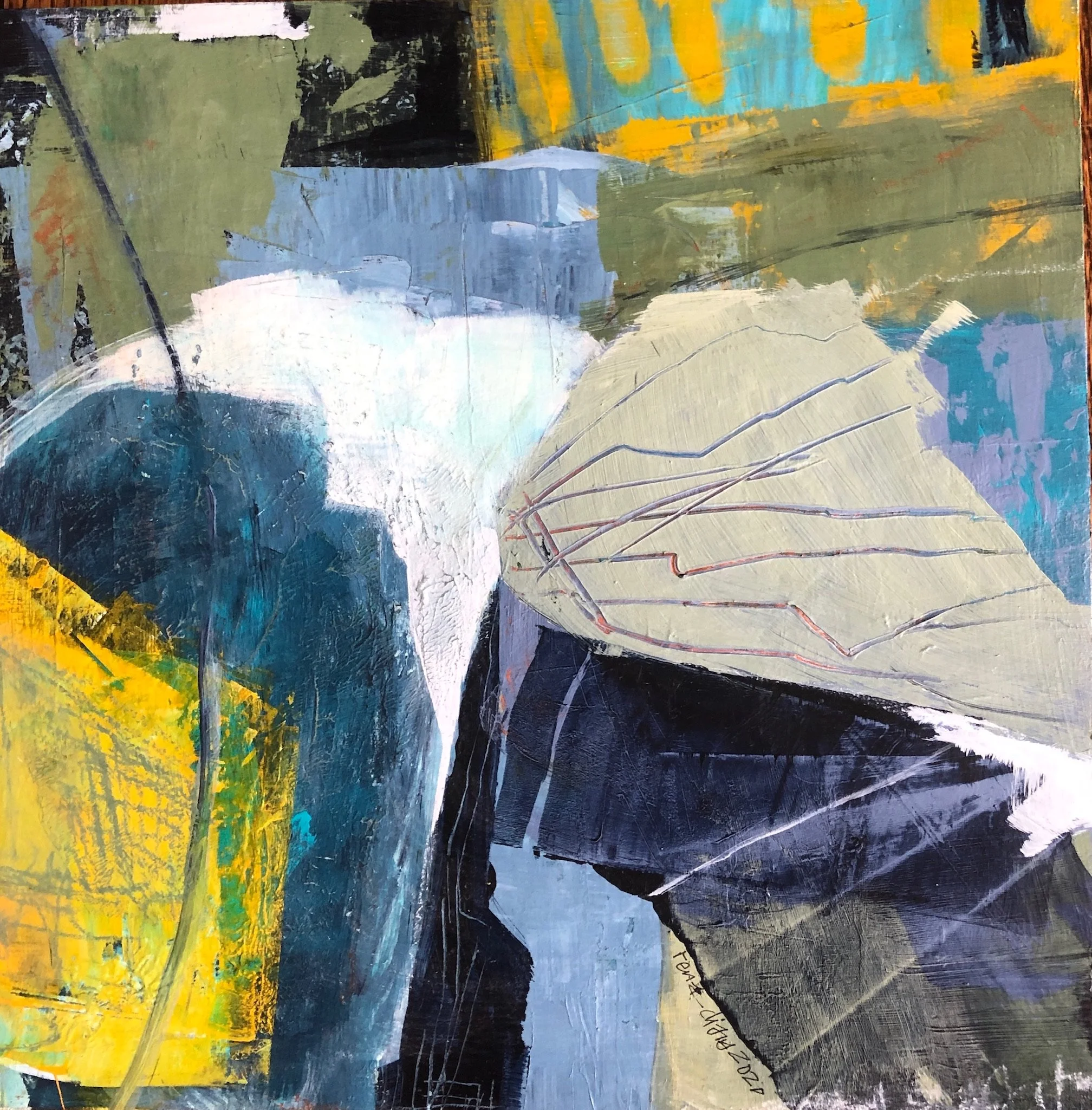 STILL FLUX- acrylic paint and mixed media on wood panel 12" x 12" SOLD