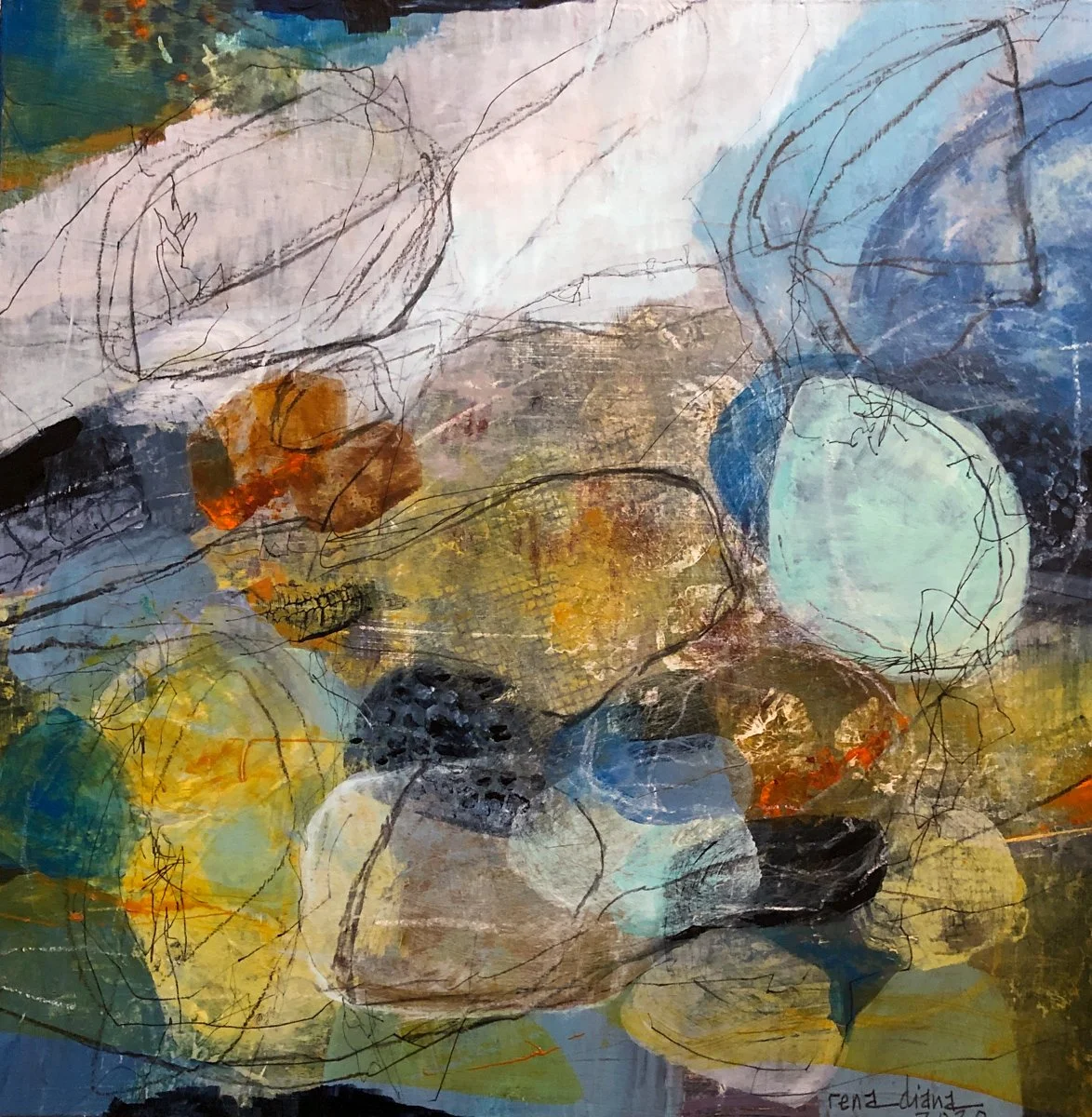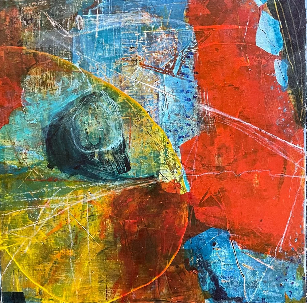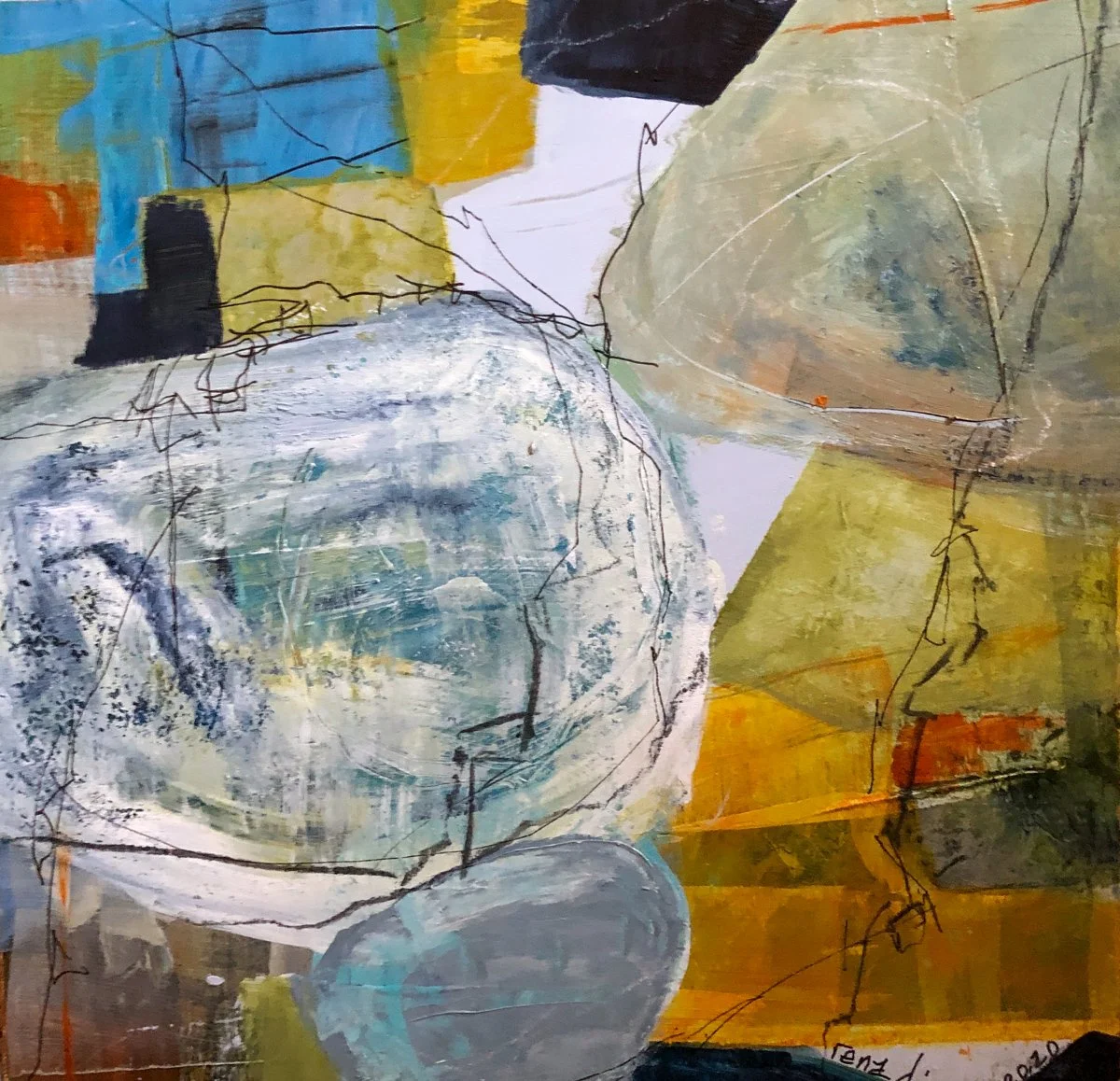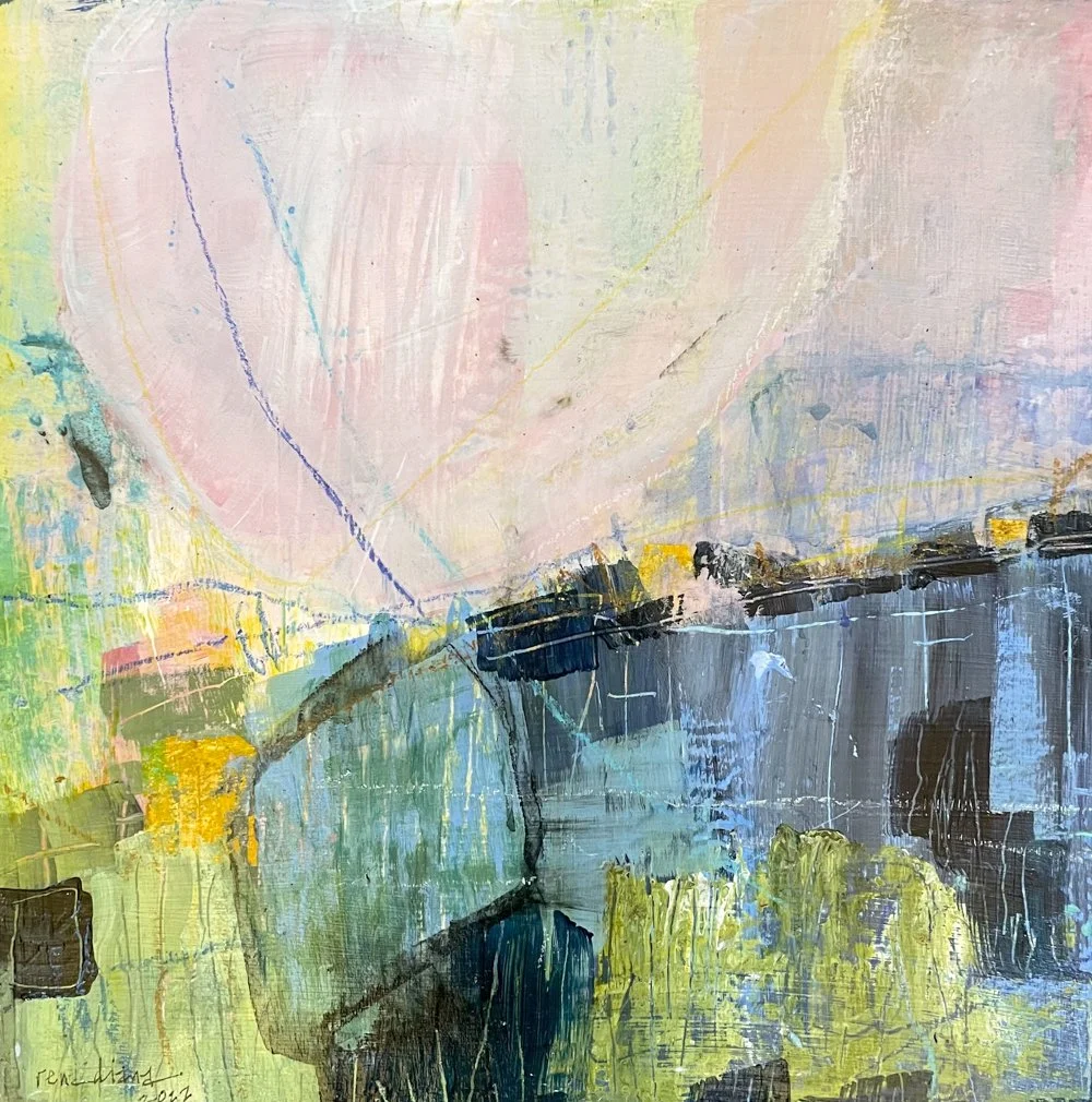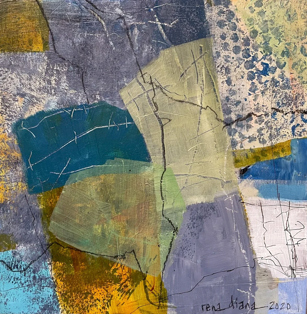 STILL FLUX- acrylic paint and mixed media on wood panel 12" x 12" SOLD