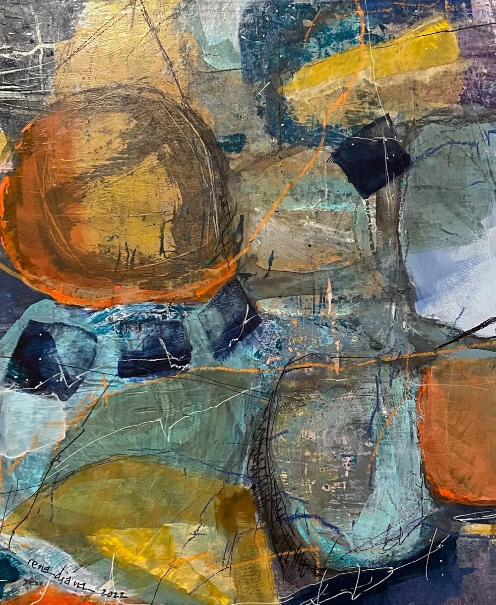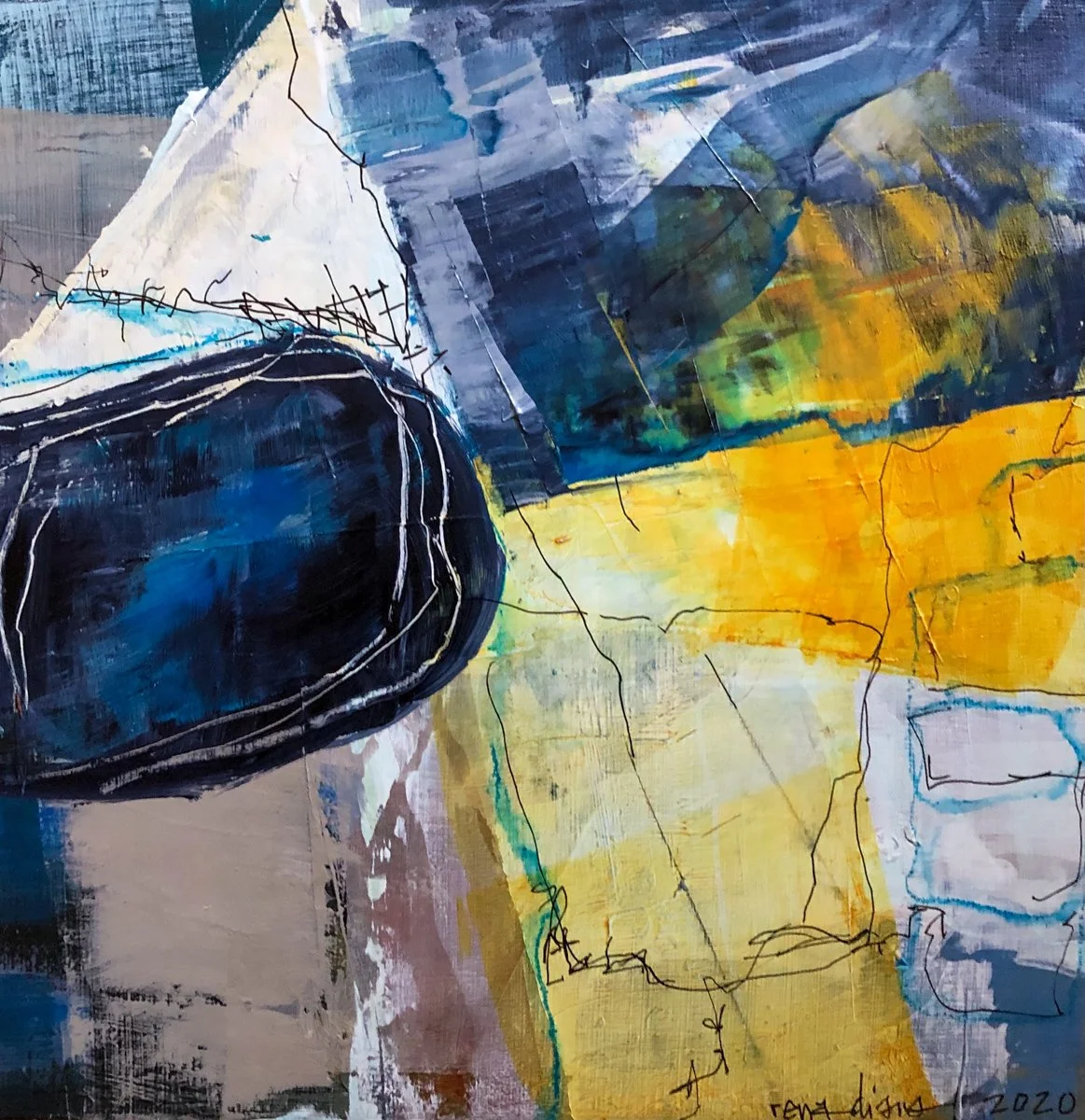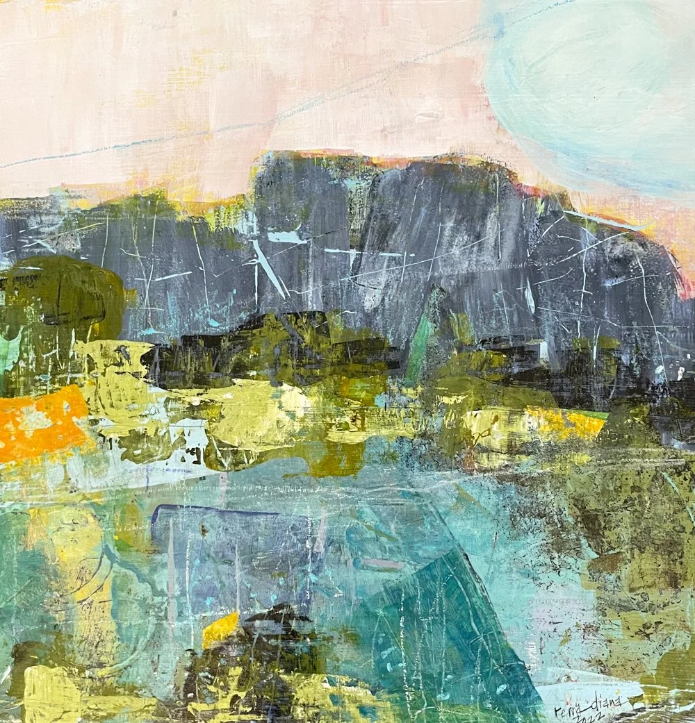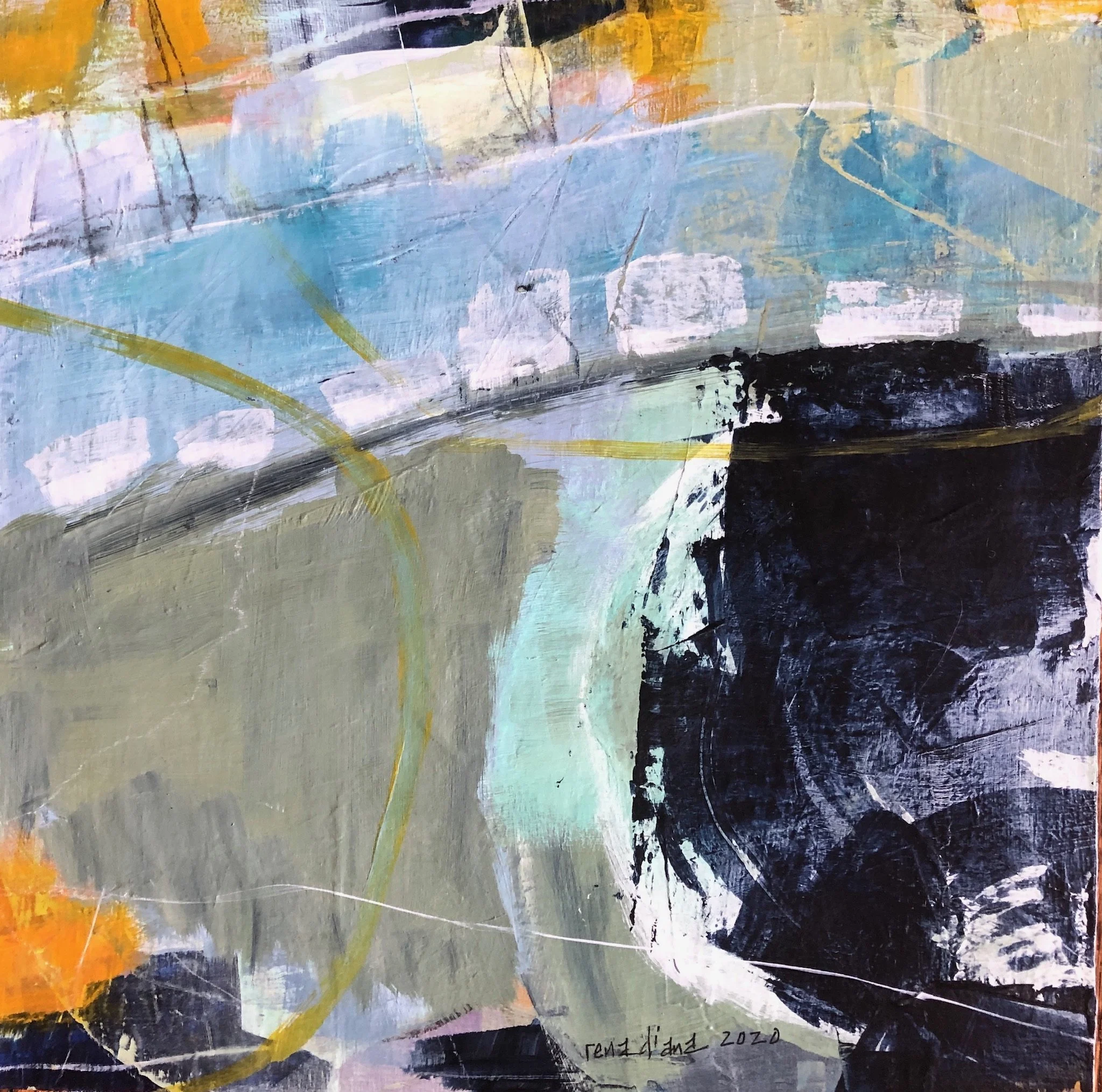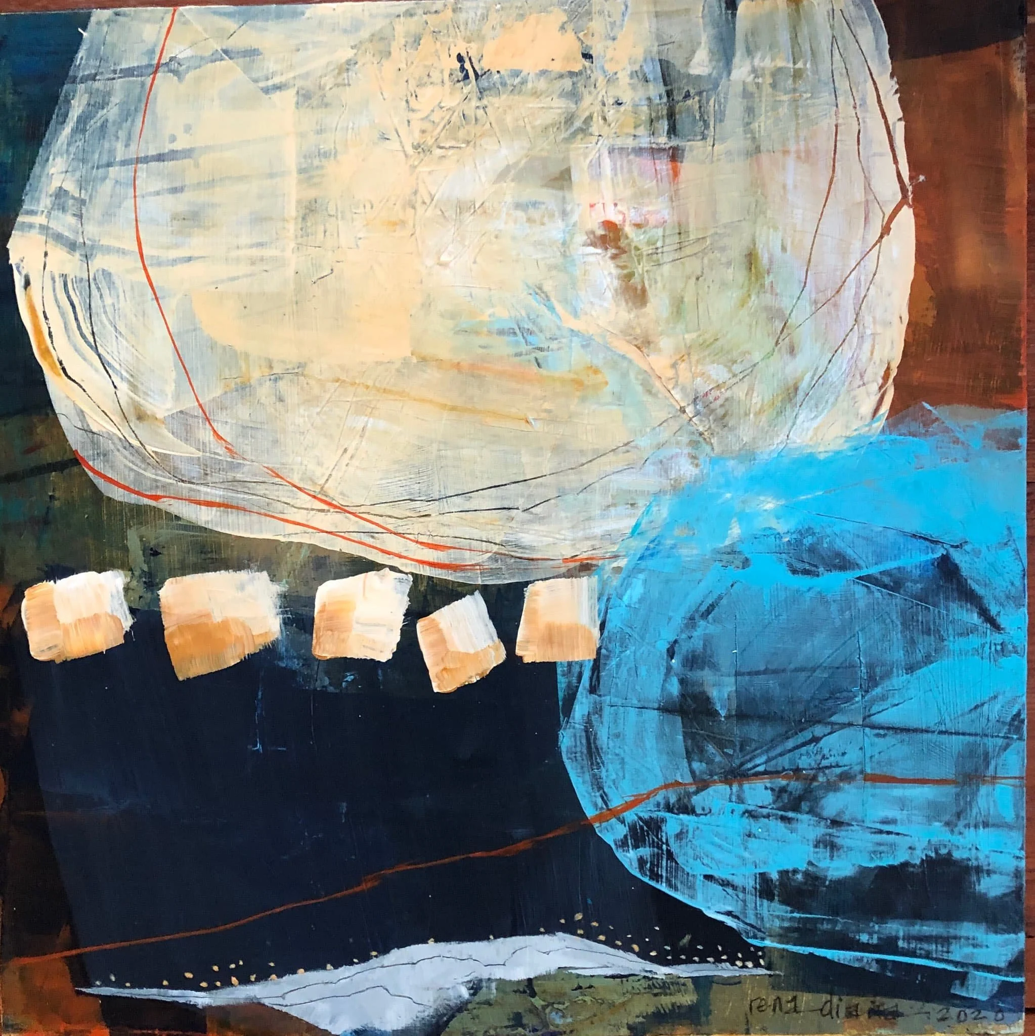 STILL FLUX- acrylic paint and mixed media on wood panel 12" x 12" SOLD