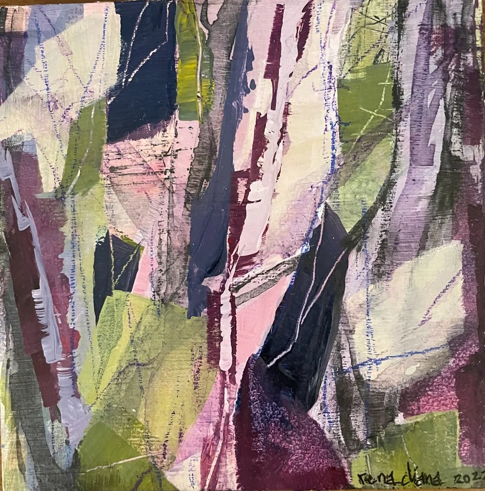 A SINGING WIND- acrylic paint and mixed media on wood panel 12" x 12"