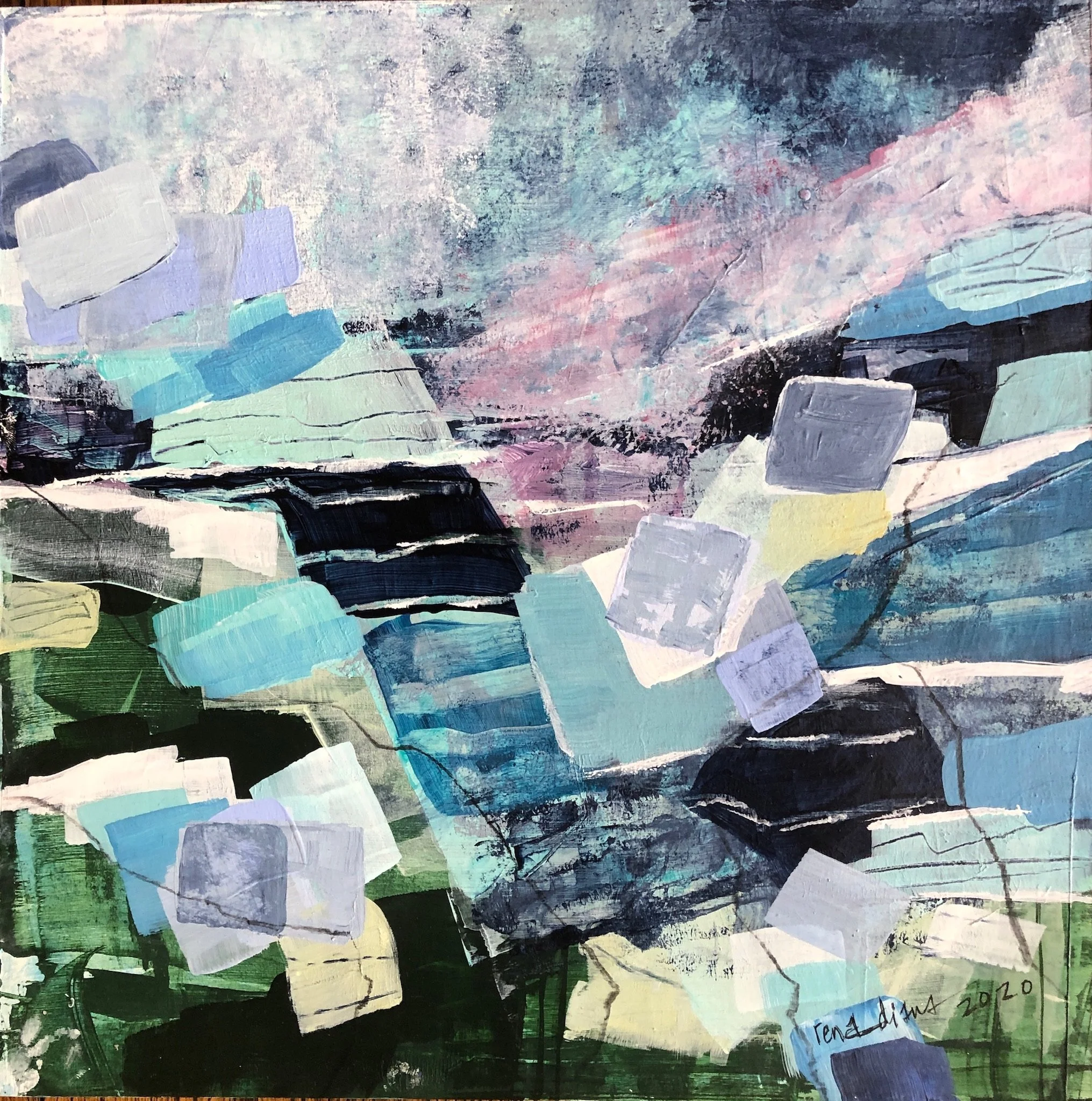 ENDLESS EBB-acrylic paint and mixed media on wood panel 12" x 12" SOLD