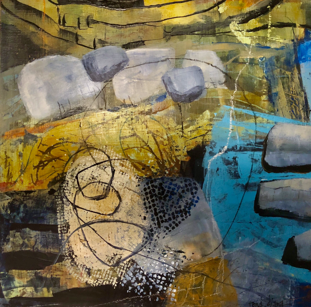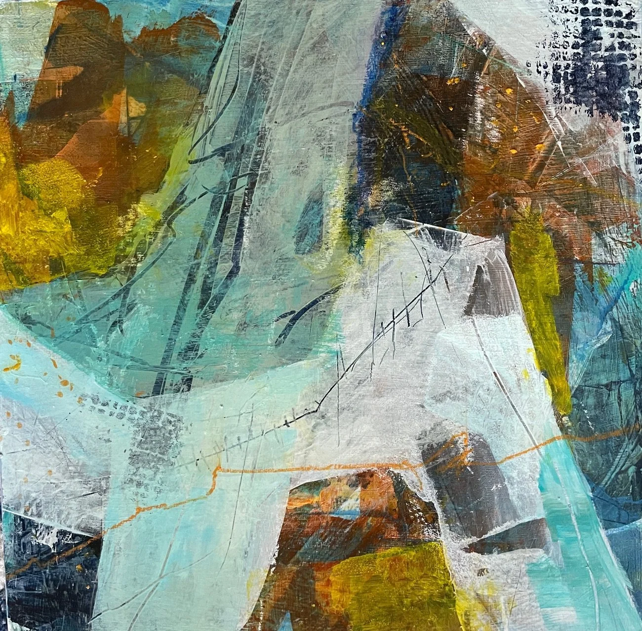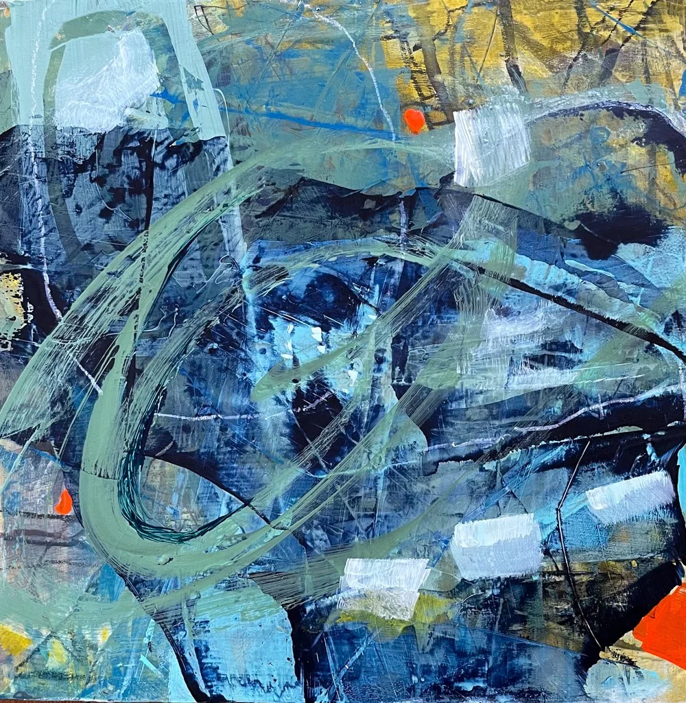 UNDERFLOW- acrylic paint and mixed media on wood panel 12" x 12" SOLD