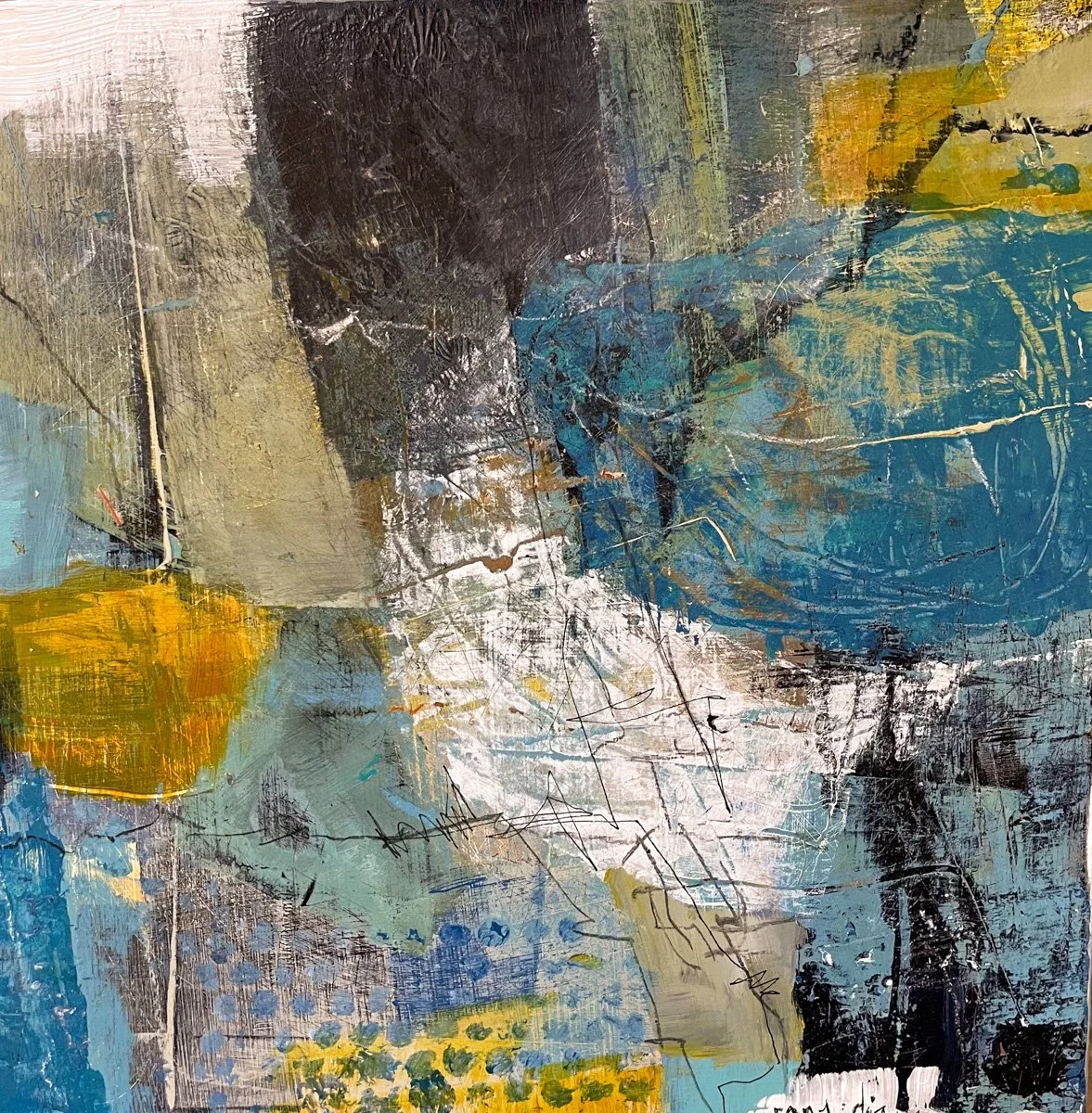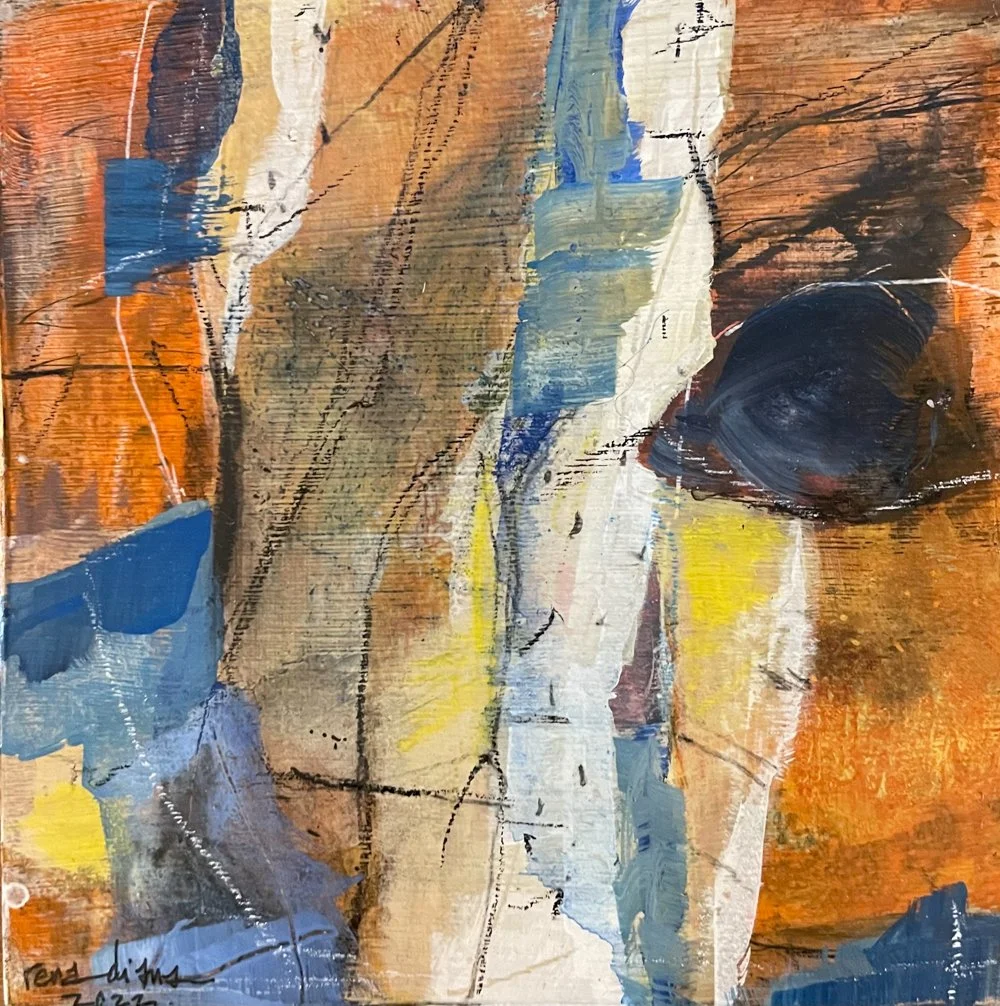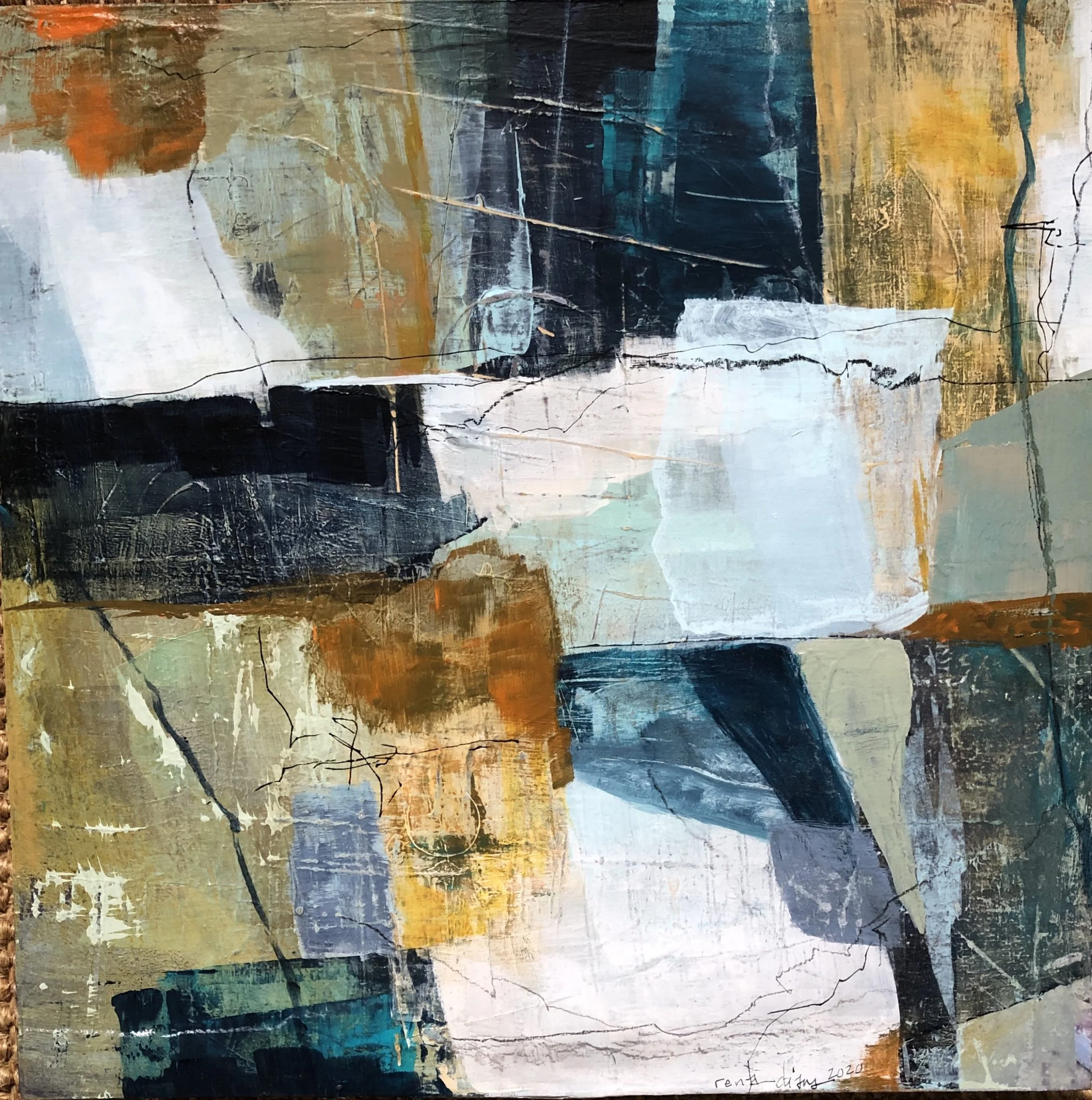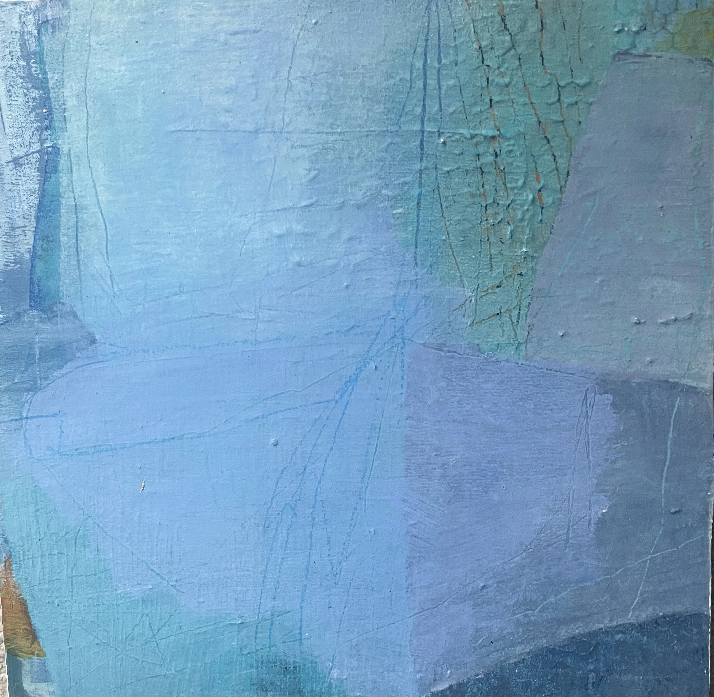 AUTUMN BLUES V- acrylic paint and mixed media on wood panel 8" x 8" SOLD