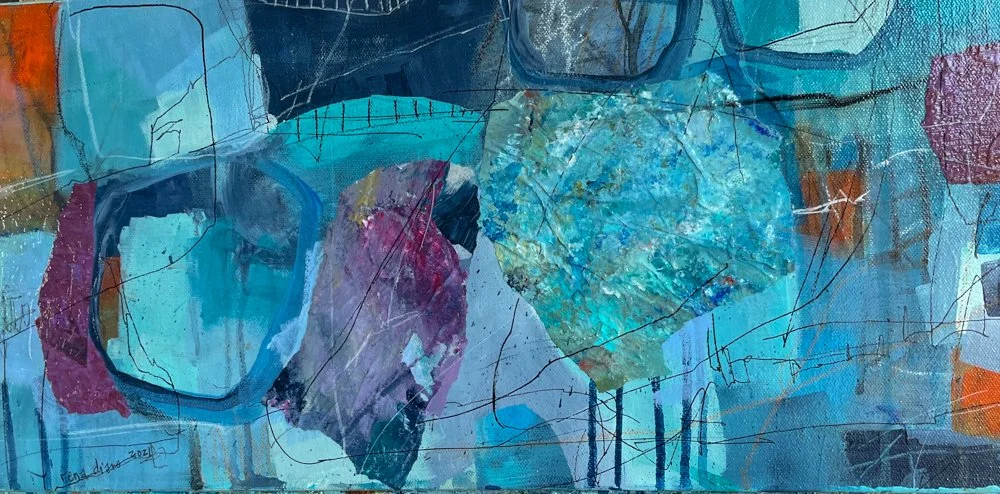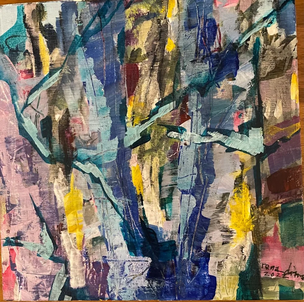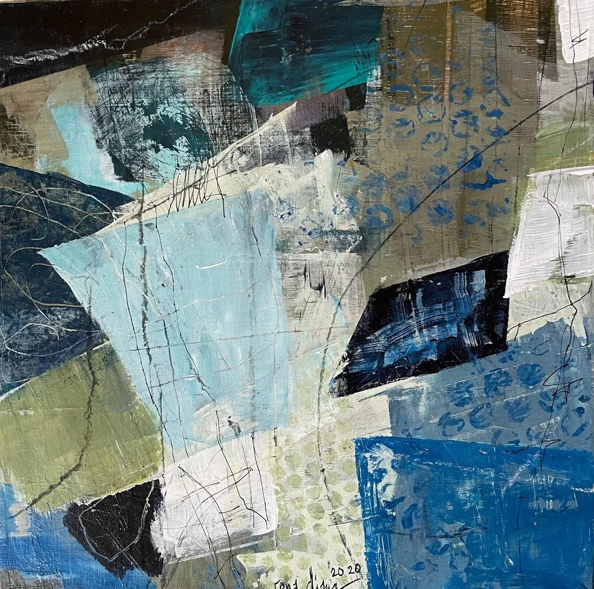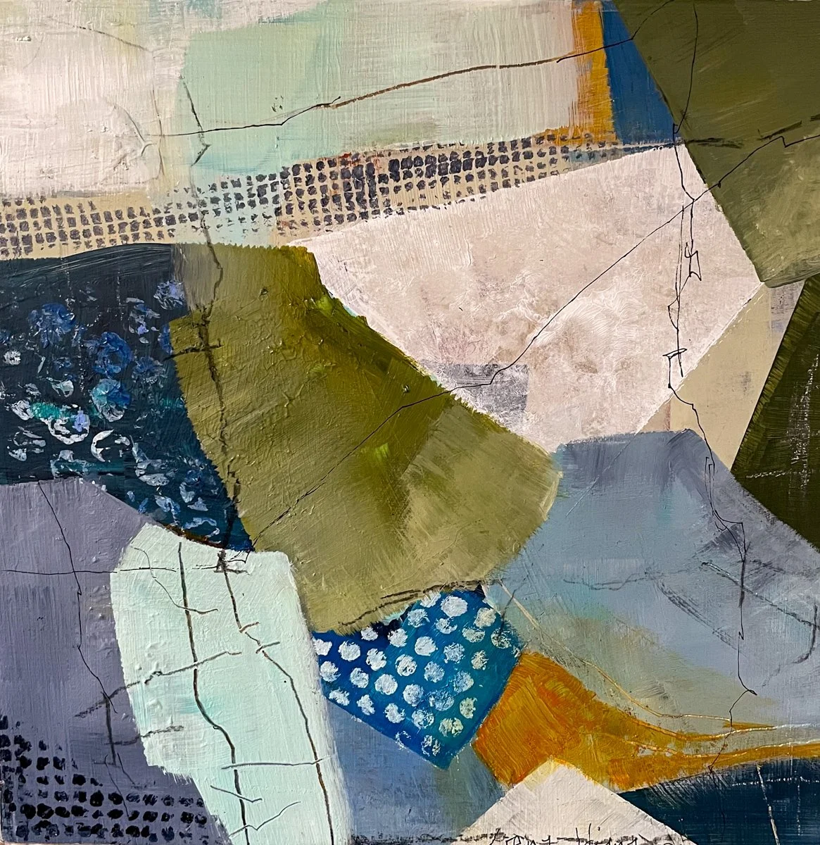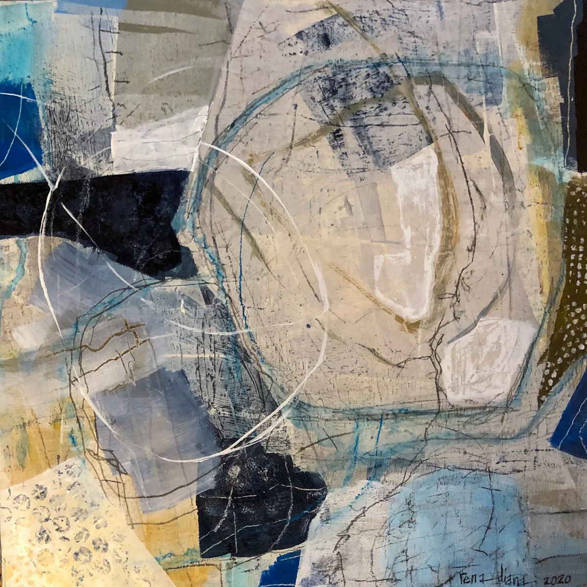AUTUMN BLUES V- acrylic paint and mixed media on wood panel 8" x 8" SOLD