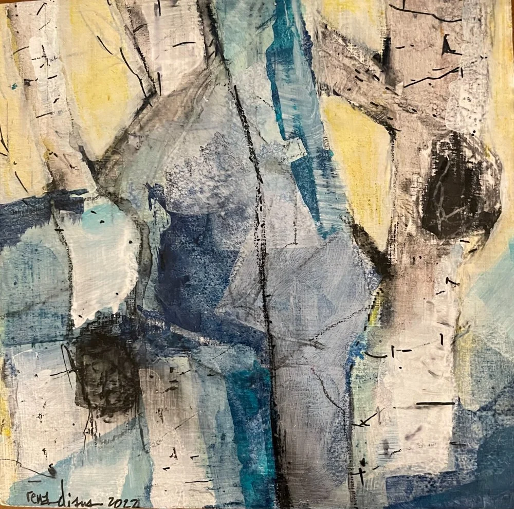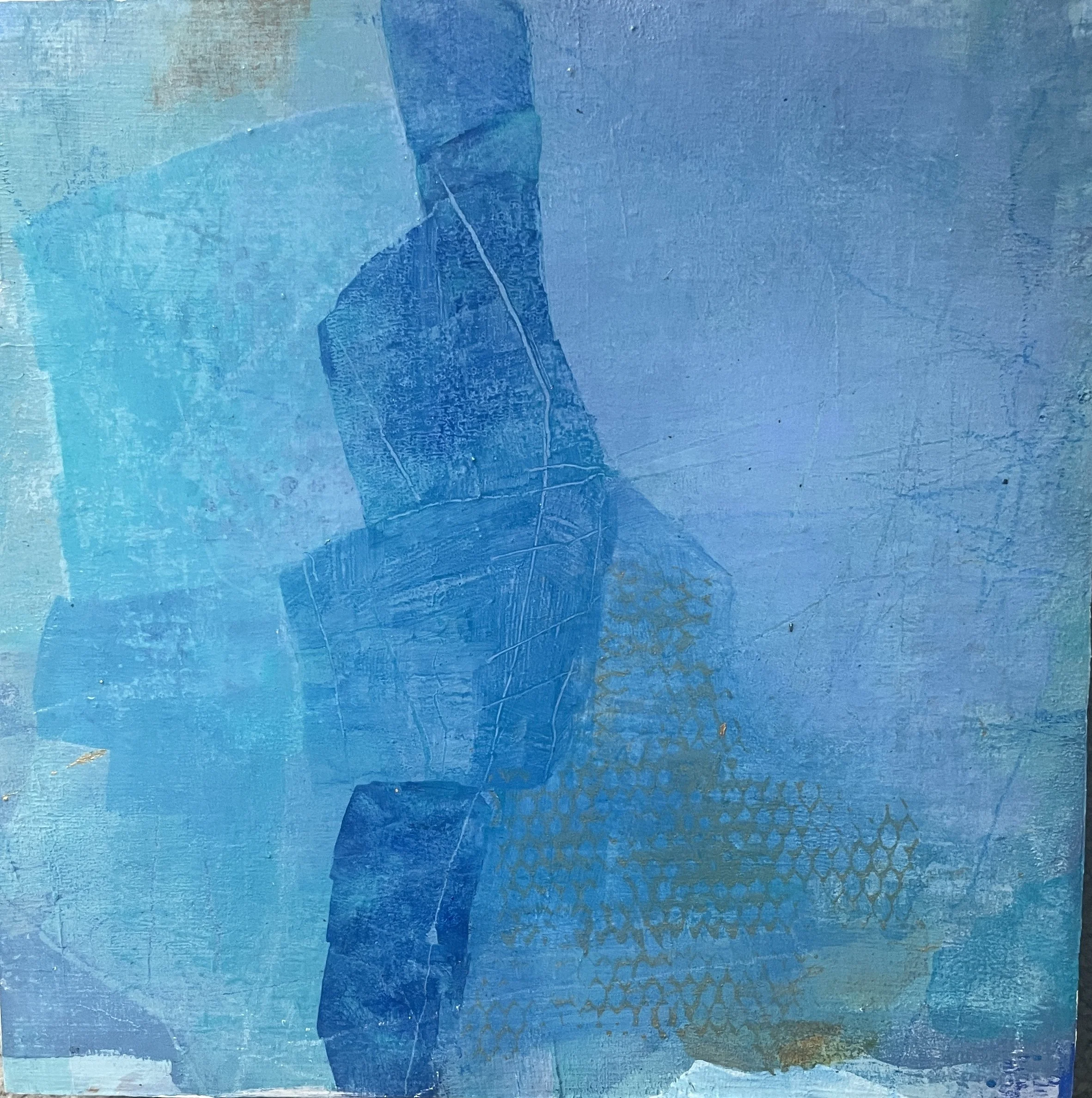 AUTUMN BLUES IV- acrylic paint and mixed media on wood panel 8" x 8" SOLD