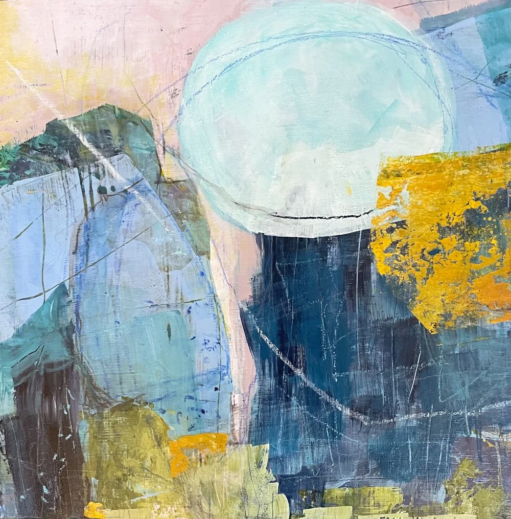 MOON GLIMMER- acrylic paint and mixed media on wood panel 12" x 12"