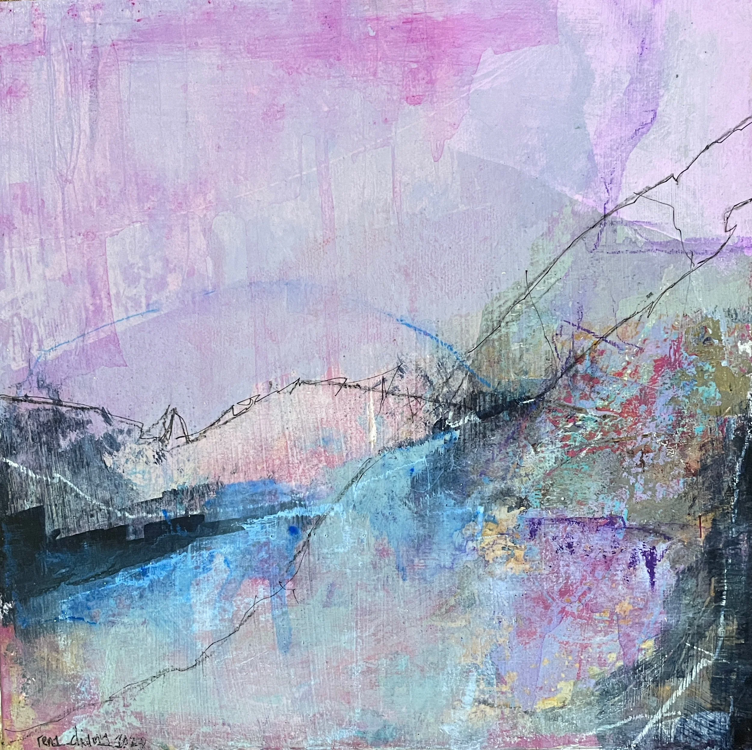 SINGING RIVER, WISE ROCK- acrylic paint and mixed media on wood panel 12" x 12" SOLD