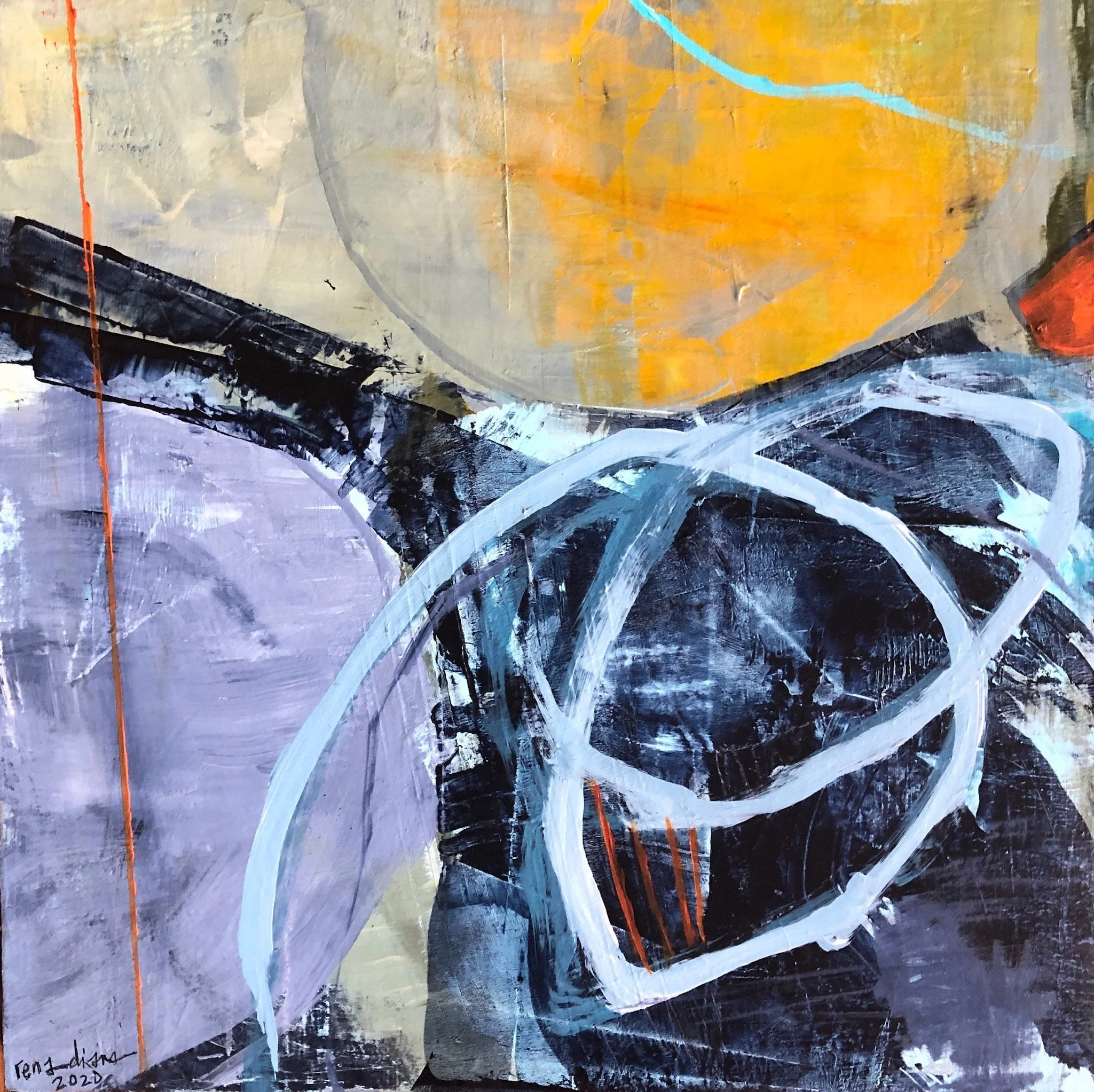 FLOW- acrylic paint and mixed media on wood panel 12" x 12"