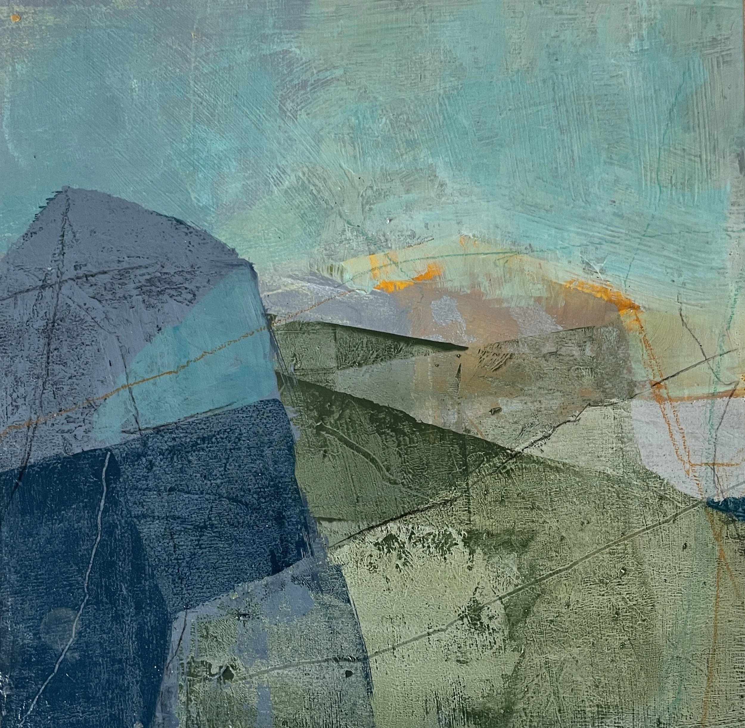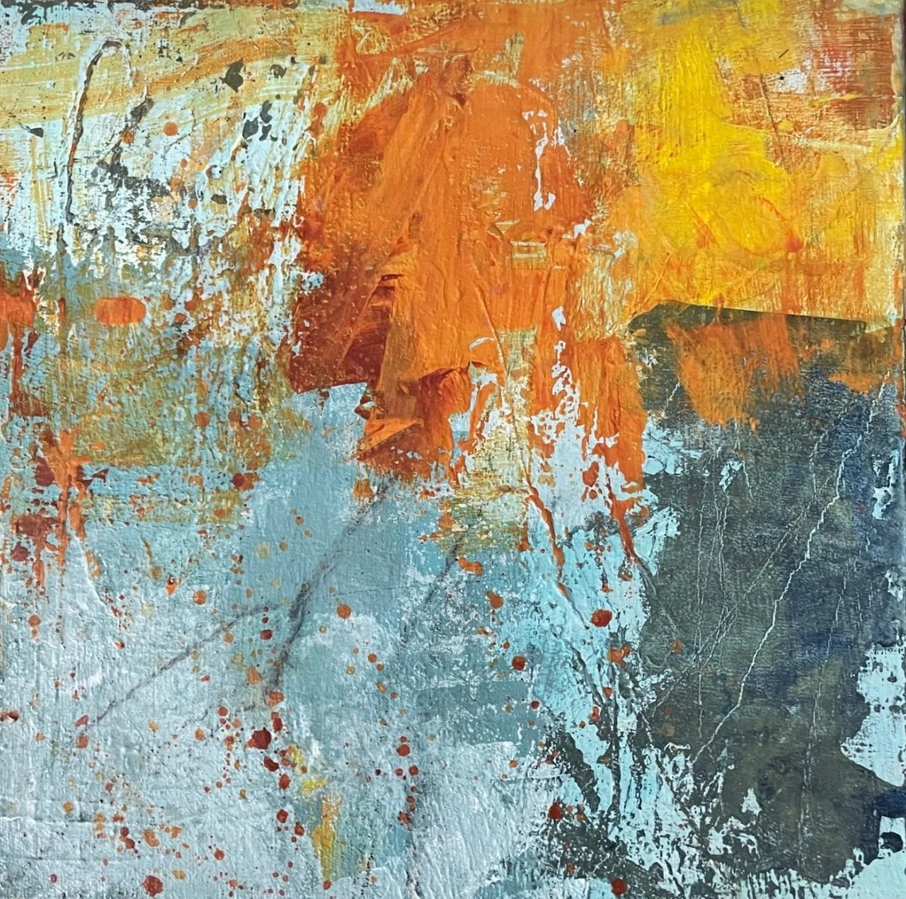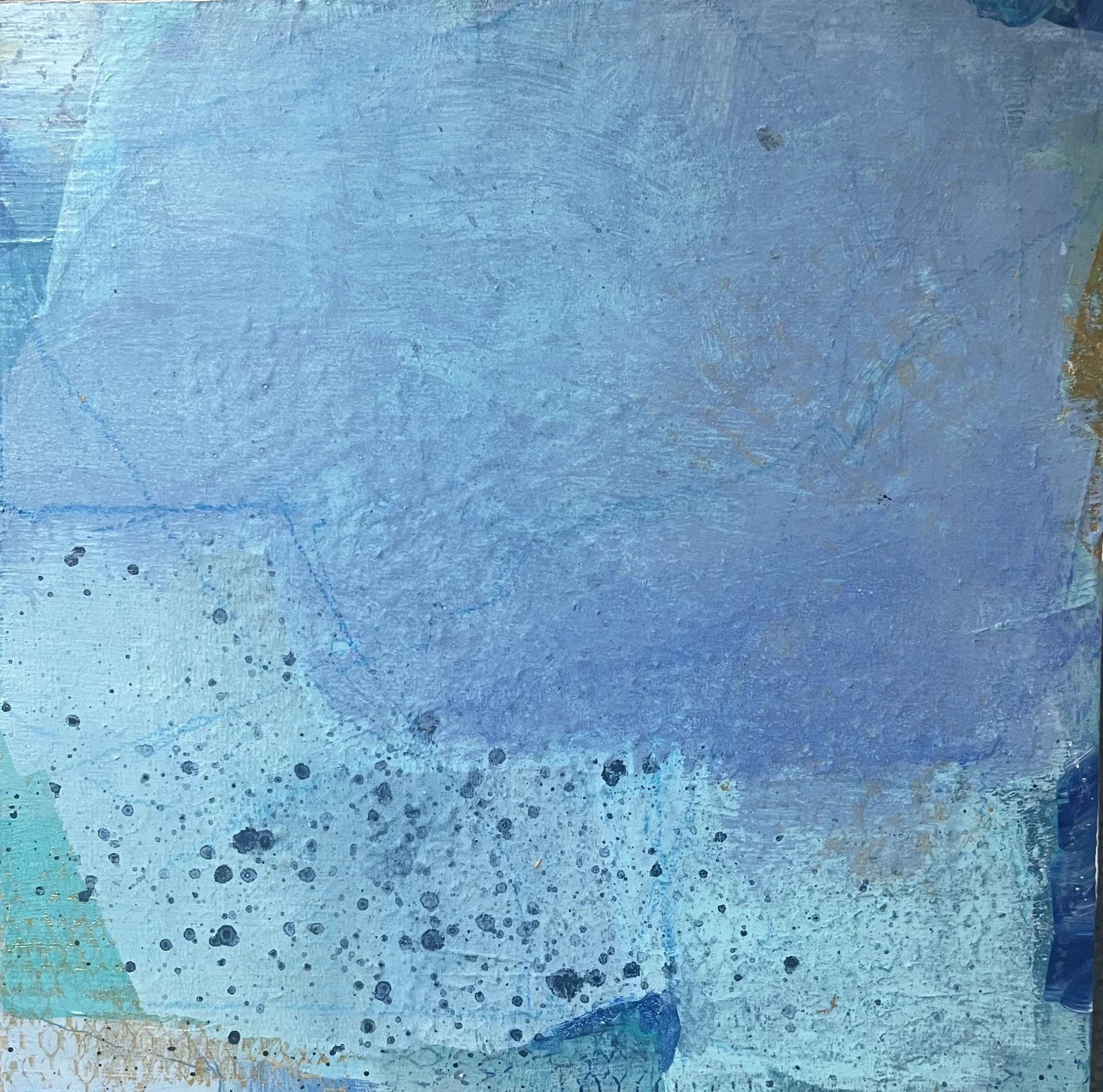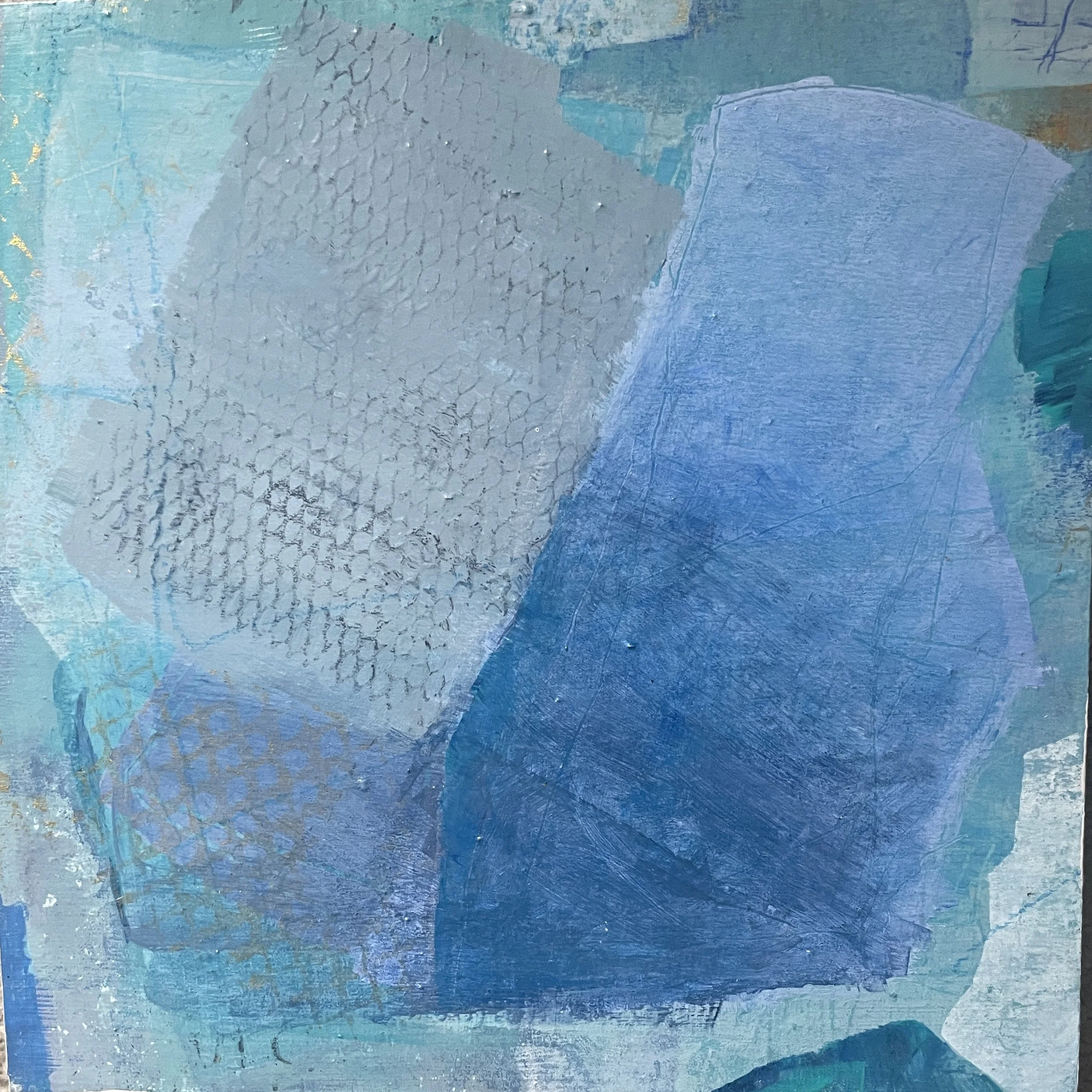 AUTUMN BLUES II- acrylic paint and mixed media on wood panel 8" x 8" SOLD