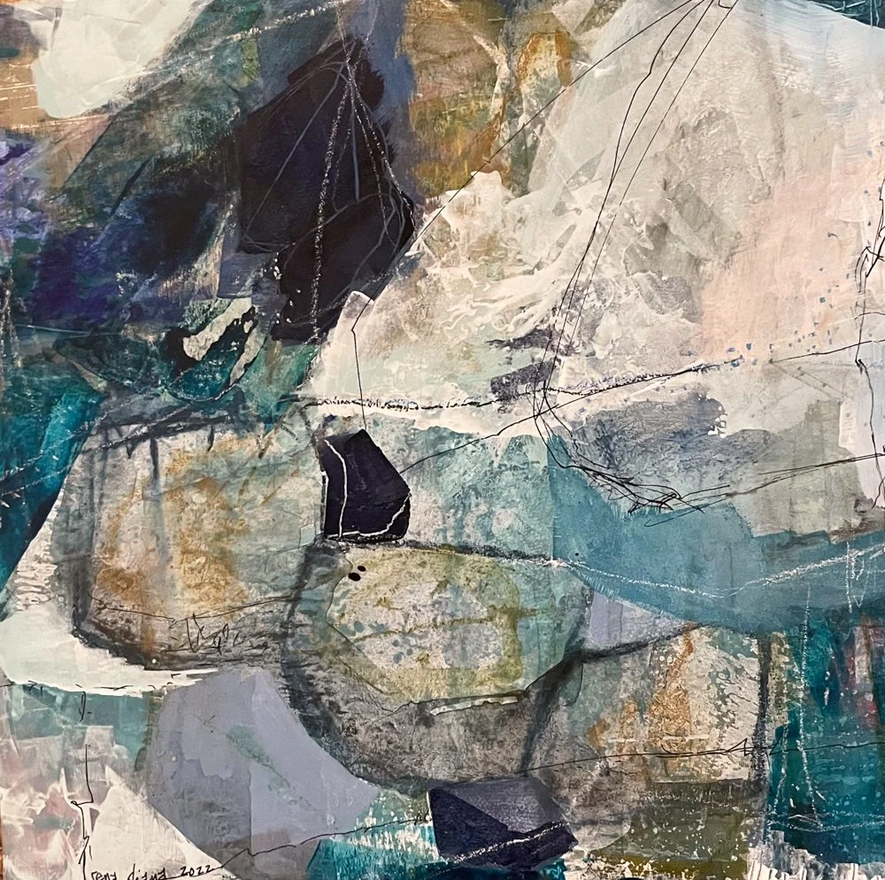 IMPEDED STREAM- acrylic paint and mixed media on wood panel 12" x 12" SOLD