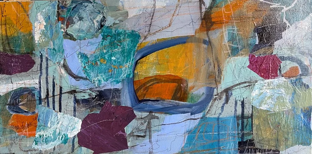 RHAPSODY III- acrylic paint and mixed media on wood panel 10" x 20"