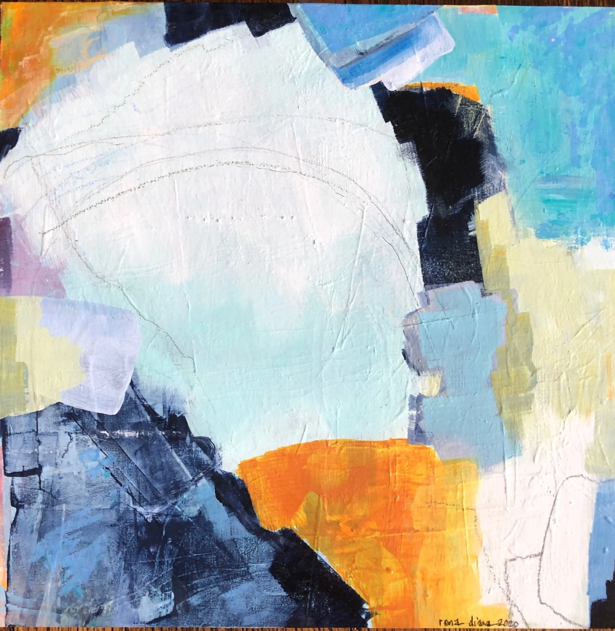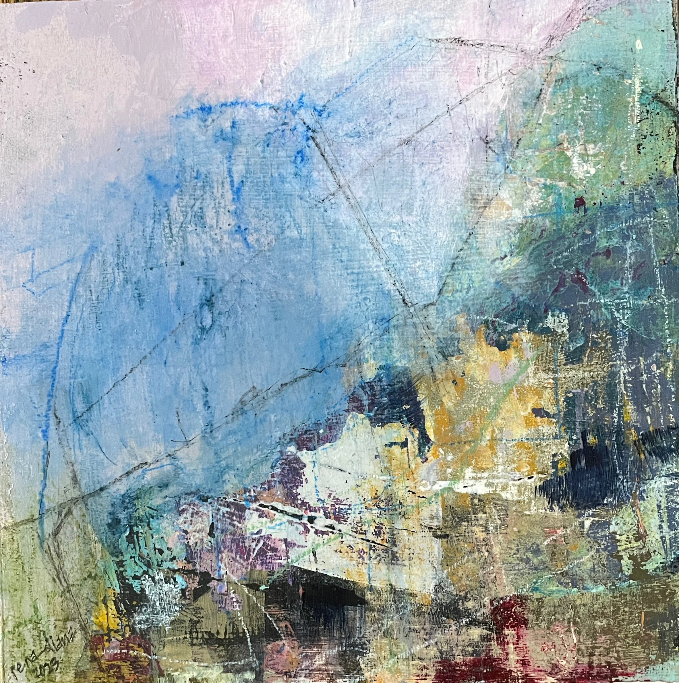 SKY DANCE- acrylic paint and mixed media on wood panel 8" x 8" SOLD