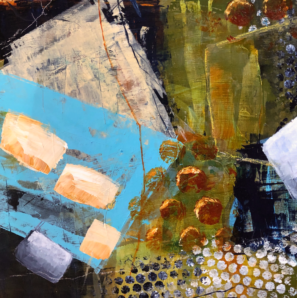 RIPENING- acrylic paint and mixed media on wood panel 12" x 12" SOLD